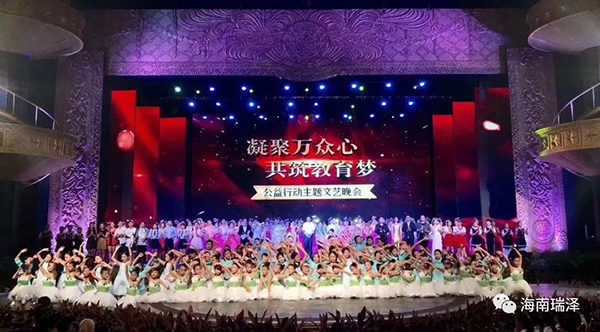 晚会上,王铁明现场致辞,市领导为爱心企业和个人代表颁发荣誉证书,海南瑞泽、景园集团三亚分公司等6家爱心企业向三亚市教育基金会捐款2020万元人民币,其中,海南瑞泽公司及董事长张海林先生分别捐赠200万元。三亚教育基金会首次为35名三亚优秀学子和67名贫困优秀学生颁发奖学金、助学金。来自市一中、海南中学三亚学校、市一小、市九小等学校的老师和学生们上台表演精心编排的文艺节目,表达广大师生对三亚的热爱和对梦想的追求。截至8月19日,三亚教育基金会募集资金总额达1.75亿元人民币。严朝君向关心、支持三亚教育的爱心企业和社会各界表示感谢。他指出,三亚教育基金会的成立是三亚教育工作的一件大好事,相信三亚教育基金会必将为三亚教育事业的发展提供宝贵支持。各级党委政府和全社会有责任和义务,帮助孩子们实现就学梦想,从而报效国家、为社会作贡献。希望通过晚会宣传动员引导全社会更多的爱心企业、爱心人士,能够更加关注教育、关心教育、支持教育,为三亚教育事业发展添砖加瓦。